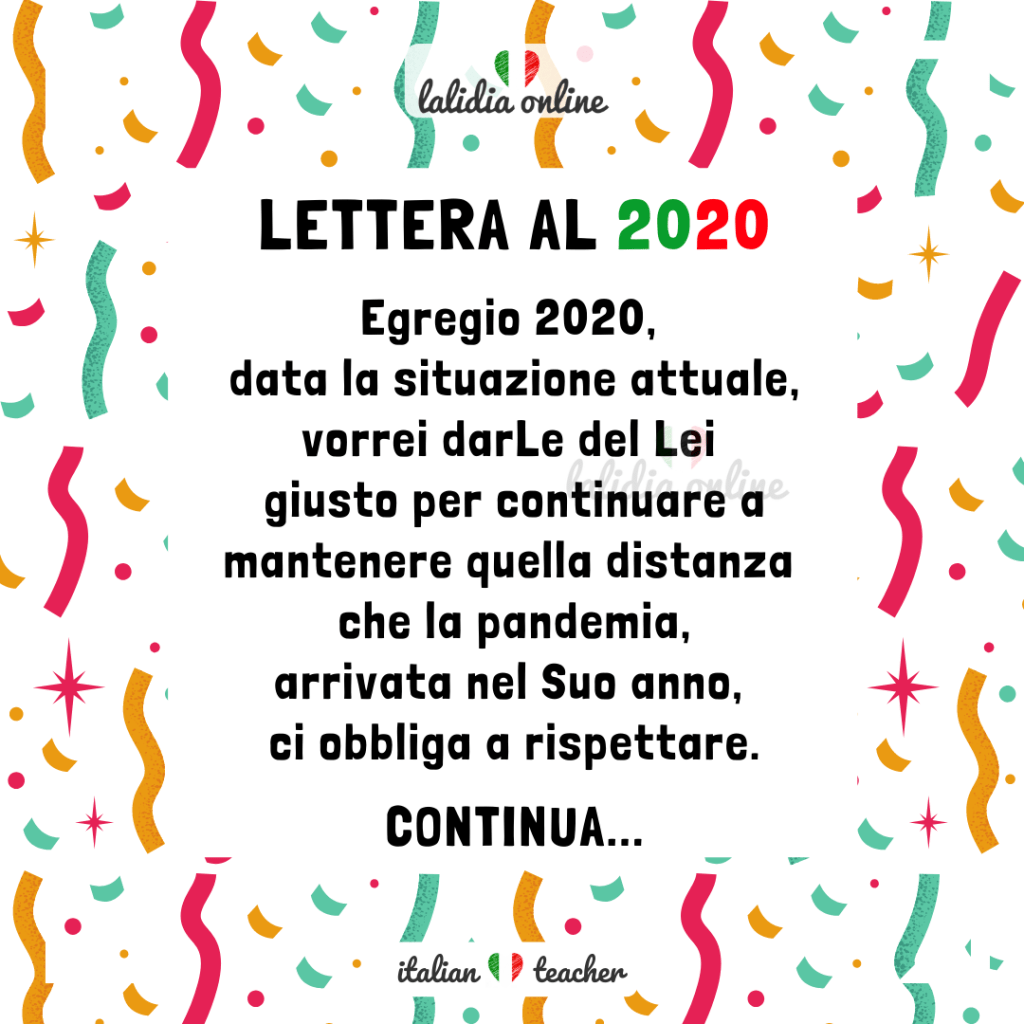 data la situazione attuale, vorrei darLe del Lei giusto per continuare a mantenere quella distanza che la pandemia, arrivata nel suo anno, ci obbliga a rispettare.